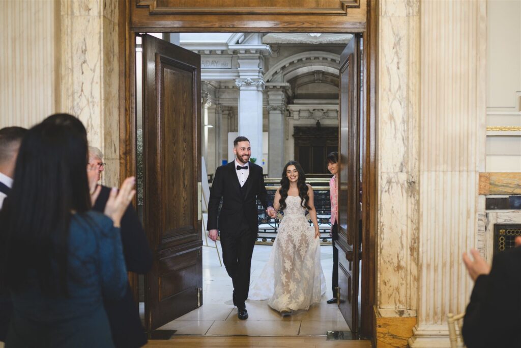 The ceremony itself took place in one of One Great George Street’s grand rooms, and the couple made it truly their own by reading personal vows to each other. You could feel how much it meant to both of them. After a few nerves, the smiles came easily – and didn’t leave for the rest of the day.